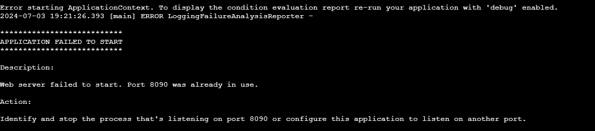 Identify and stop the process that's listening on port 8090 or configure this application to listen on another port.