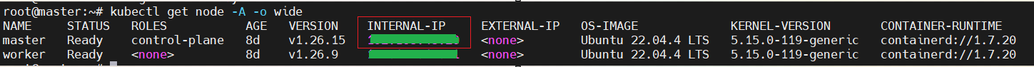 노드 IP는 kubectl get nodes -o wide 명령어를 사용하여 확인.