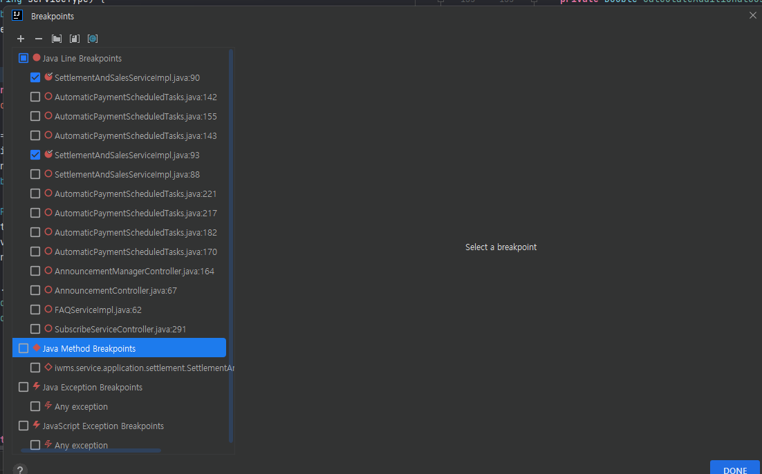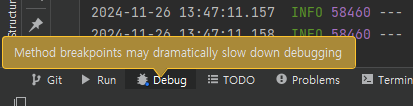 메서드 브레이포인트로 인해서 디버깅이 드라마틱하게 느려질 수 있다,,