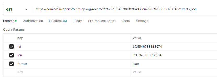 두 가지 조건으로 써칭해봤을때 OpenStreetMap nominatim API 가 적합함