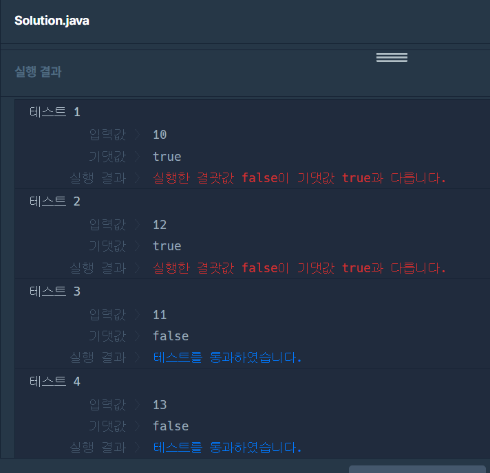 전부 다 false만 나온다는 거니카,,, 걍 다 틀린것임,,,,,,,,