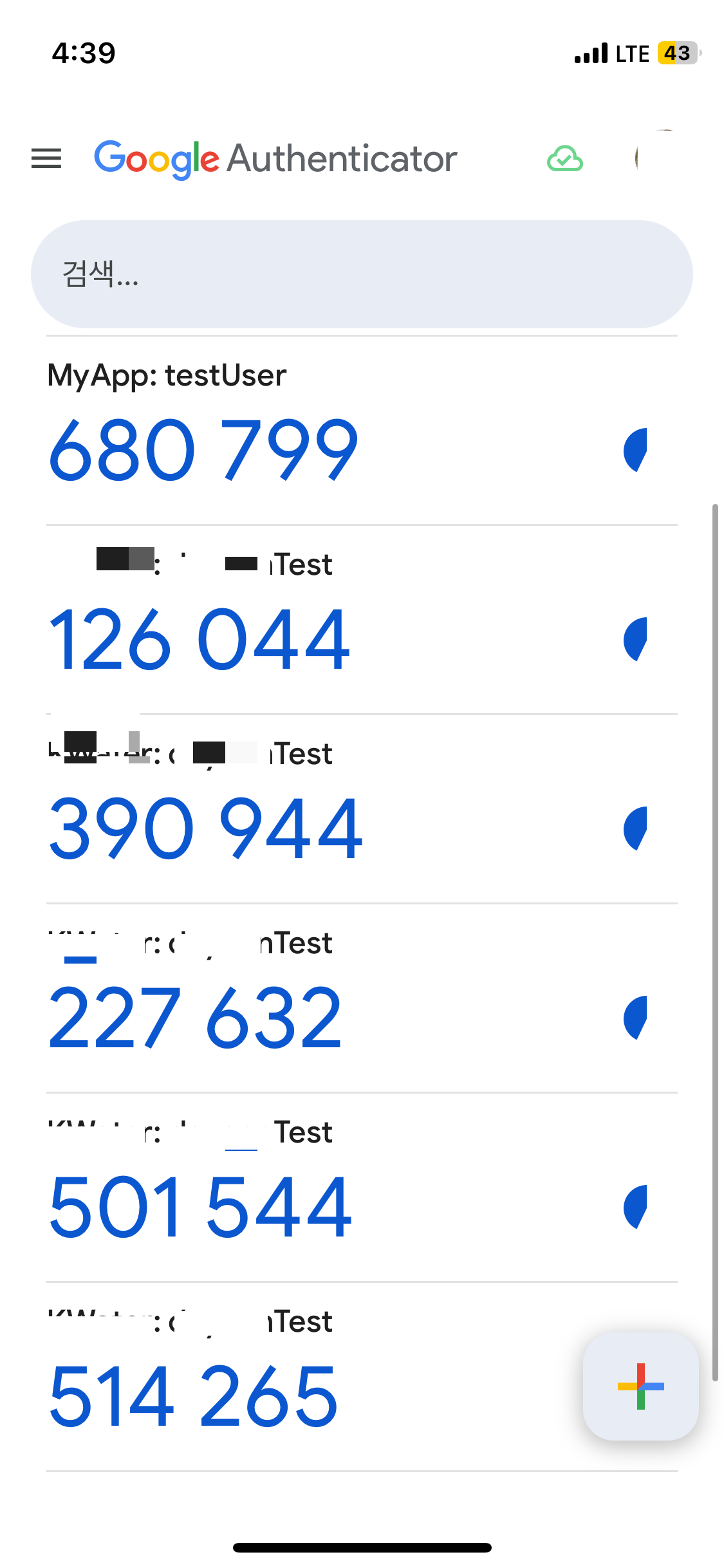 서버는 **generateOtp(secretKey)**를 호출하여 동일한 6자리 OTP 코드를 생성함.