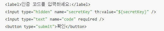 input 박스에 code들어갈 자리에 secretKey 로 지정해놓고