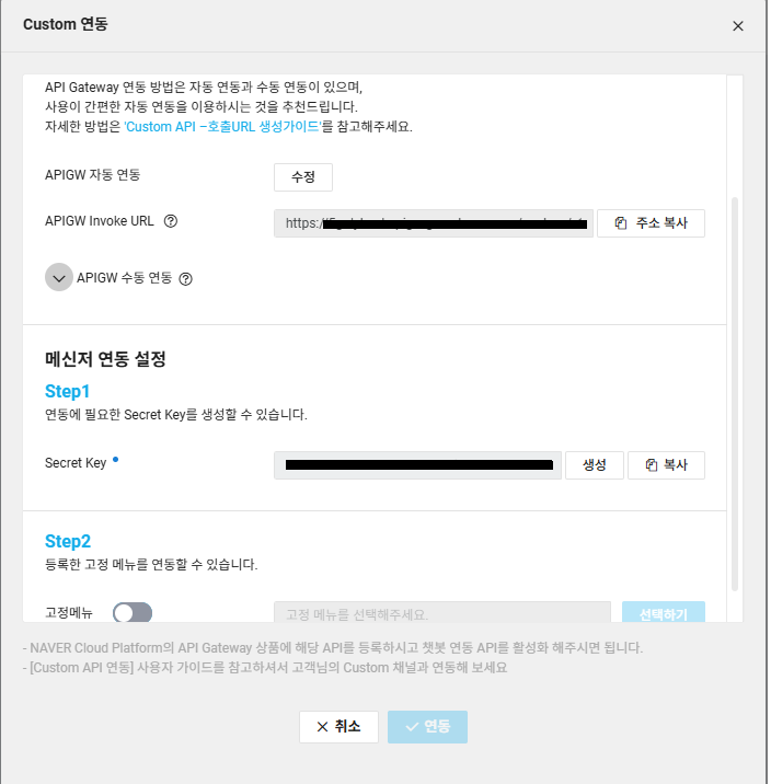 위 참고해서 apiURL 랑 secretKey 넣기.