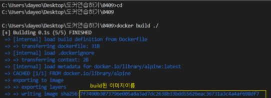 - docker build 를 이용해서 설정한 Dockerfile 에 맞는 이미지 생성